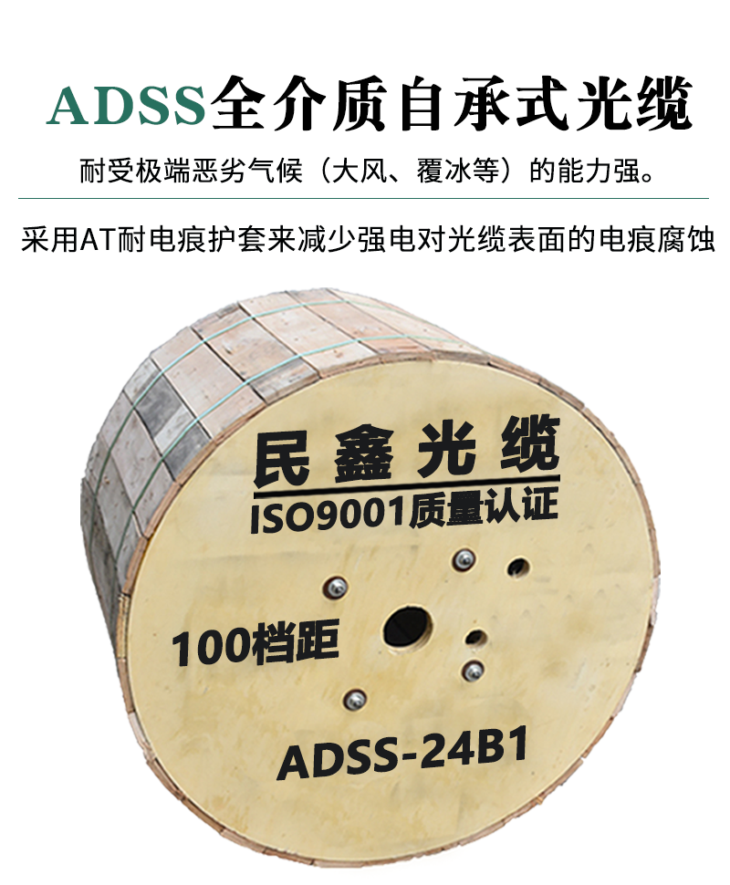 普通光纜的國家標準明確規(guī)定了不同使用方式(如架空、管道、直埋等)的光纜應具有的機械強度。而ADSS光纜是自承式架空光纜,所以它除了必須承受自身重力的長期作用外,還必須能經(jīng)受住自然環(huán)境的洗禮。如果ADSS光纜機械性能設計不合理、與當?shù)靥鞖獠幌噙m應,則光纜就會存在安全隱患,壽命就會打折扣。因此,每個ADSS光纜工程都必須根據(jù)光纜路由所處的自然環(huán)境和跨距ADSS的架設檔距可達到1800米/擋,耐壓高、抗電蝕性能好、防雷擊,可以在500kV電壓等級的輸電線路桿塔上敷設,并具有很強的抗彈擊性能,一般的砂槍在10米以外的距離射擊不會對光纜造成故障性傷害。還具有很強的耐低溫性能和環(huán)境適應性。光纜不依賴于輸電線而獨立敷設,施工和維護都比較方便,而且不需要停電作業(yè),光纜也比較便宜。
