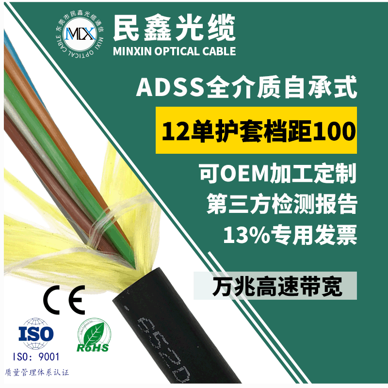 光纖芯數(shù):ADSS光纜-12B1-100-500-12-twelve。