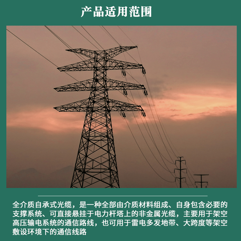 ADSS全介質自承式架空光纜(AllDielectricSelf-SupportingOpticalFiberCable,簡稱ADSS光纜),ADSS光纜在220kV、110kV、35kV電壓等級輸電線路上廣泛使用,一般用于已建線路上。全介質即光纜所用的是全介質材料,自承式是指光纜自身加強構件能承受自重及外界負荷。這一名稱就點明了這種光纜的使用環(huán)境及其關鍵技術:因為是自承式,所以其機械強度舉足輕重;使用全介質材料是因為光纜處于高壓強電環(huán)境中,必須能耐受強電的影響;由于是在電力桿塔上架空使用,所以必須有配套的掛件將光纜固定在桿塔上。