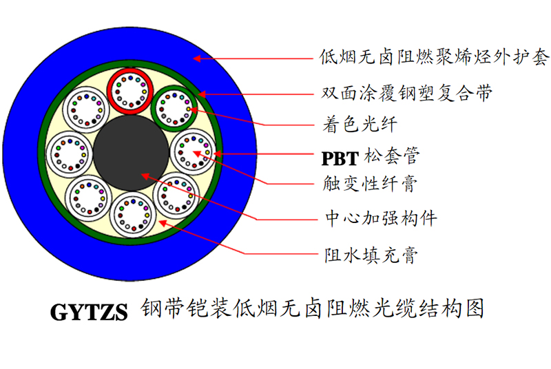 來(lái)說(shuō),金屬加強(qiáng)芯外還需擠上一層聚乙烯(PE)。松套管(和填充繩)圍繞中心加強(qiáng)芯絞合成緊湊的圓形纜芯,纜芯內(nèi)的縫隙充以阻水填充物。涂塑鋁帶 (APL)縱包后擠制聚乙烯阻燃護(hù)套成纜。