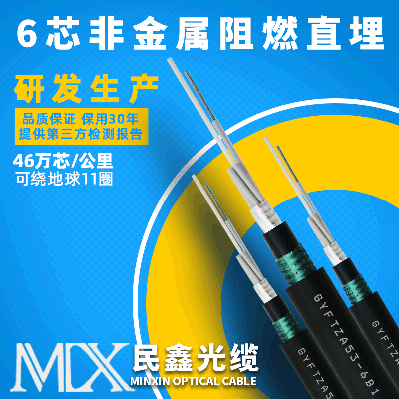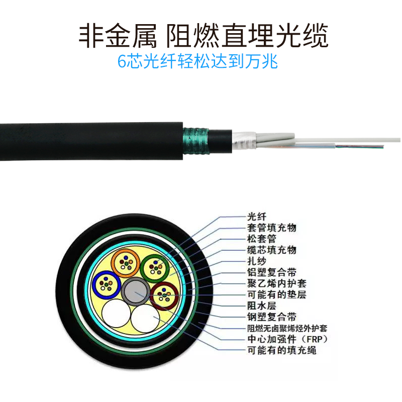 松套層絞式非金屬加強(qiáng)芯鎧裝阻燃光纜 (GYFTZA53) GYFTZA53 光纜的結(jié)構(gòu)是將 250μm 光纖套入高模量材料制成的松套管中,松套管內(nèi)填充防水化合物。纜芯的中心是一根非金屬加強(qiáng)芯(FRP),對(duì)于某些芯數(shù)的光纜來說,非金屬加強(qiáng)芯外還需擠上一層聚乙烯(PE)。松套管和填充繩圍繞中心加強(qiáng)芯絞合成緊湊和圓形的纜芯,纜芯內(nèi)的縫隙充以阻水填充物。涂塑鋁帶(APL)縱包后擠上一層聚乙烯內(nèi)護(hù)套,雙面涂塑鋼帶(PSP)縱包后擠制阻燃外護(hù)套成纜。 產(chǎn)品特點(diǎn) ? 具有很好的機(jī)械性能、溫度特性和阻燃性能 ? 松套管材料本身具有良好的耐水解性能和較高的強(qiáng)度 ? 管內(nèi)充以特種油膏,對(duì)光纖進(jìn)行了關(guān)鍵性保護(hù) ? 良好的抗壓性和柔軟性 ? 采用下列措施來確保光纜的防水性能: - 單根非金屬中心加強(qiáng)芯 - 松套管內(nèi)填充特種防水化合物 - 完全纜芯填充 - 涂塑鋁帶(APL)防潮層 - 雙面涂塑鋼帶(PSP)提高光纜的抗透潮能力